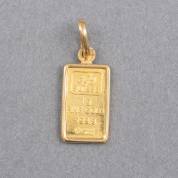 24kt gouden baartje, gehouden in gouden hangermontuur, gewicht 1,6 gram
