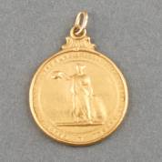 14kt gouden munthanger gegraveerd 'D.L. Goedhart voor 40-jarigen dienst N.V. Le Ripolin', gewicht 6,4 gram, Ø 21 mm
