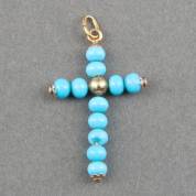 14kt gouden kruishanger met turkooiskralen, brutogewicht 1,2 gram, 2,5 cm