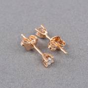 Paar 18kt gouden roségouden solitairoorstekers, elk gezet met briljantgeslepen diamant, totaal circa 0.16ct, brutogewicht 0,8 gram, Ø 3,4 mm