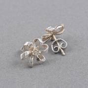 Paar 14kt witgouden bloemvormige oorstekers gezet met briljantgeslepen diamant, brutogewicht 2,6 gram, Ø 1 cm