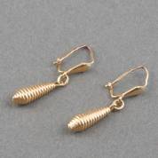 Paar 14kt gouden oorhangers met geribde pegeltjes, gewicht 1,4 gram, 3 cm