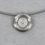 Edelstalen spangcollier, waaraan edelstalen hanger gezet met briljantgeslepen diamant in glas, Niessing, Duitsland, 45 cm en 1,5 cm