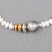 Parelcollier, Schoeffel, met 18kt gouden wit- en geelgouden tussenkralen, Tahitiparel, aan 18kt witgouden sluiting, brutogewicht 39,4 gram, 44 cm