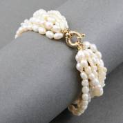Armband met negen strengen rijst- en barokparels aan 14kt gouden siersluiting, 20 cm