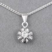 14kt witgouden vossenstaart schakelcollier waaraan 14kt witgouden entouragehanger gezet met briljantgeslepen diamant, totaal circa 0.16ct, brutogewicht 3,0 gram, collier 45 cm, hanger 1,5 cm
