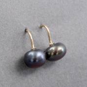 Paar 14kt gouden oorhangers met gecultiveerde grijze parels, brutogewicht 2 gram, Ø 0.6 cm