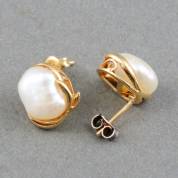 Paar 18kt gouden oorknoppen gezet met zoetwater barokparel, brutogewicht 3.8 gram, circa Ø 12,5 mm
