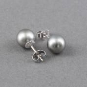 Paar 14kt witgouden oorstekers gezet met grijze Tahitiparel, brutogewicht 2,6 gram, Ø 8 mm