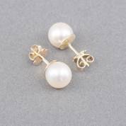 Paar 14kt gouden oorstekers gezet met gecultiveerde parel, brutogewicht 2,8 gram, Ø 8 mm