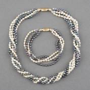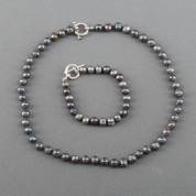 Parelcollier en armband van donkere zoetwaterparels aan BWZG kapittelslot, circa 55 en 22 cm