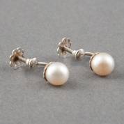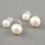 Paar 1e gehalte zilveren oorstekers met een grote en kleine zoetwaterparel, 2 cm