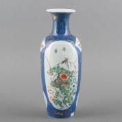 Chinees porseleinen poudre bleu vaas met famille verte bloemdecors, 19e eeuw -barst in hals van 4,5 cm-, hoogte 35 cm