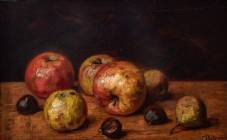 Cornelis Pouderoijen (1868-1948), stilleven met appels, peren en kastanjes, olieverf op paneel, r.o. gesigneerd, 23 × 37 cm