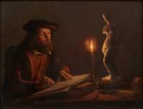 Omgeving Johannes Rosierse (1818-1901), kunstenaar bij kaarslicht, olieverf op paneel, niet gesigneerd, 24 × 30 cm, herkomst: veiling Sotheby's, Amsterdam, september 1998