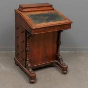 Wortelnotengefineerde davenport, het schrijfblad met groen leder bekleed, 19e eeuw -defecten, geen sleutels-, 84 × 53 × 54 cm