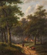 Jan Evert Morel (1835-1905), boslandschap met herder en vee, olieverf op paneel, r.o. gesigneerd, 32 × 27,5 cm