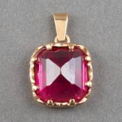 14kt gouden hanger met kussengeslepen synthetische robijn, brutogewicht 5,8 gram, 1,6 cm