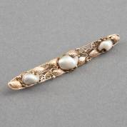 BWGG broche met bladdecor en gezet met drie biwa-parels, brutogewicht 4,8 gram, 6,5 cm