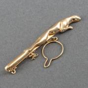 14kt gouden dasspeld in de vorm van een jaguar, met veiligheidsketting, gewicht 5,2 gram, 5,5 cm