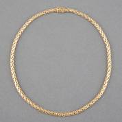 14kt gouden gevlochten collier, deels gesatineerd, aan verborgen bakslot met twee veiligheidsachtjes, gewicht 26,8 gram,