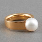 14kt gouden ring gezet met parel, Ø 10 mm, mt. 19, brutogewicht 15,0 gram
