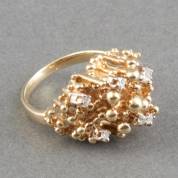 14kt gouden organisch gevormde ring gezet met zeven briljantgeslepen diamanten, mt. 16, brutogewicht 8,4 gram