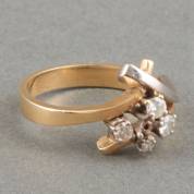 14kt geel en witgouden ring gezet met vier briljantgeslepen diamanten, circa 0.30ct, mt. 19,5, brutogewicht 6,6 gram -één diamant mist-