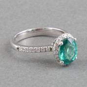 18kt witgouden cocktailring, gezet met lagunetoermalijn, 2.08ct, omgeven door 34 briljantgeslepen diamanten, totaal 0.35ct, kleur F, kwaliteit VS1, mt. 17,5, brutogewicht 4,2 gram, met ALGT-certificaat met nummer 56406732