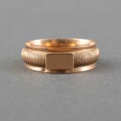 18kt gouden bandring met geribd decor en vlakke rechthoek met monogram, mt. 21, gewicht 7,2 gram