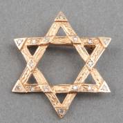 BWGG Davidster-broche gezet met zestien achtkantgeslepen diamantjes, brutogewicht 4,2 gram, 3 × 3,3 cm