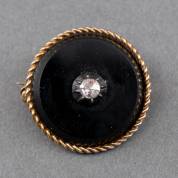 Ronde 14kt gouden rouwbroche gezet met onyx en roosgeslepen diamant, brutogewicht 10,8 gram, Ø 2,8 cm