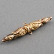 14kt gouden speld gemaakt van twee breidoppen, speld onedel, brutogewicht 6,8 gram