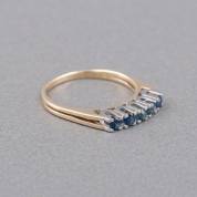 14kt wit- en geelgouden rijring gezet met zes achtkantgeslepen blauwe spinellen, mt. 18,75, brutogewicht 3,8 gram