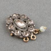 BWGG en zilveren gedeelte van een sluiting gezet met roosdiamantjes, brutogewicht 2,8 gram, 1,8 cm -gebruikssporen-