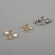 Paar 14kt gouden oorschroeven gezet met gecultiveerde parel, brutogewicht 2,4 gram, parel 7 mm, en twee paar zilveren oorschroeven, waarvan één paar verguld