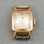 18kt gouden damespolshorloge, Omega, uurwerk: handopwind caliber 481, carrévormige kast, zonder bandje, brutogewicht 8,8 gram, 14 × 14 cm -gebruikssporen-