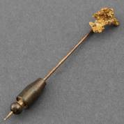 14kt gouden pin met stukje ruw goud, gewicht zonder onedele pinsluiting 1,2 gram, 5 cm -getoetst, geen keur-