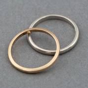Eén 14kt wit- en één 14kt geelgouden bandring, de geelgouden bandring met inscriptie, mt. 16,75, de witgouden mt. 16,25, gewicht 3,2 gram