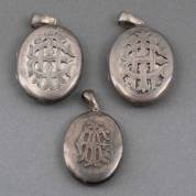 Drie zilveren portretmedaillons met applique van monogram, brutogewicht 118 gram, twee circa 5 × 4 cm