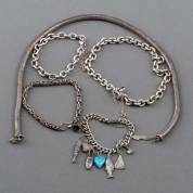 Diverse zilveren sieraden, diverse gehaltes, waaronder: bedelarmband met negen diverse bedels, koningsschakelarmband, en slangcollier met S-sluiting, gewicht 188 gram, collier 47 cm