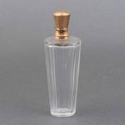 Kristallen parfumflacon met 14kt gouden montuur en dop, glazen binnenstopje aanwezig, 9 cm