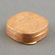Vierkant 18kt gouden pillendoosje met geribd decor, gewicht 20,4 gram, circa 3 × 3 cm