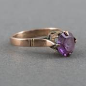 BWGG solitairring, hoog gezet met synthetische paarse saffier, mt. 16, brutogewicht 2,2 gram