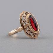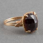 14kt gouden ring met ovale gefacetteerde granaat, brutogewicht 5,4 gram, mt. 19,5 -steen sleets-
