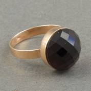 14kt gouden ring gezet met rond gefacetteerde granaat, mt. 17,75, brutogewicht 4,0 gram