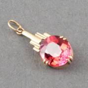 14kt gouden hanger gezet met ovaal gefacetteerde synthetische robijn, brutogewicht 1,8 gram, lengte 2,3 cm