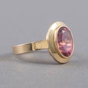 14kt gouden ring gezet met ovaal geslepen roze toermalijn, brutogewicht 8,4 gram, mt. 19,5