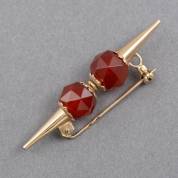 14kt gouden speld met twee rond gefacetteerde carneolen, brutogewicht 5,0 gram, 5 cm