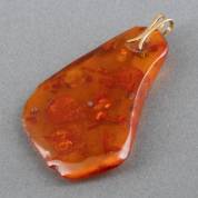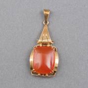 14kt gouden hanger gezet met carneool, brutogewicht 6,0 gram, 4,5 cm -keur gesleten